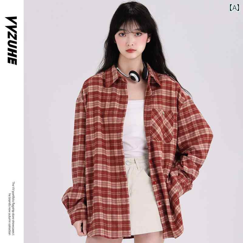 レディース シャツジャケット 春 レトロ 赤 チェック柄 ゆったり 起毛 カジュアル トップス フィット 暖かみ 日常使い