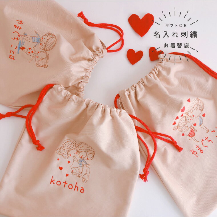【メール便無料】【お着替え袋】【名入れ】オーダー お名前 刺繍 入園 入学 子供 女の子 入園祝い 入学祝い お誕生日 お祝い お礼 通園 通学 プチギフト プレゼント ハート かわいい 昭和 レトロ【無料ラッピング】カップル