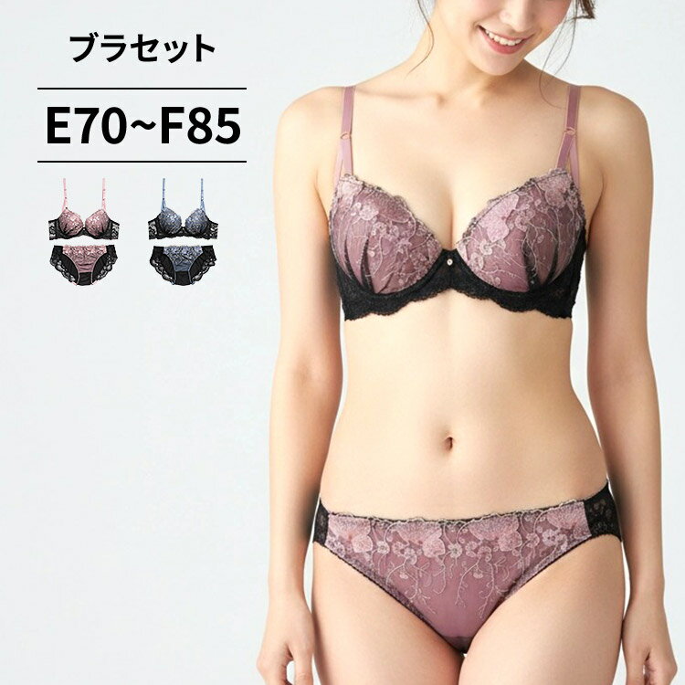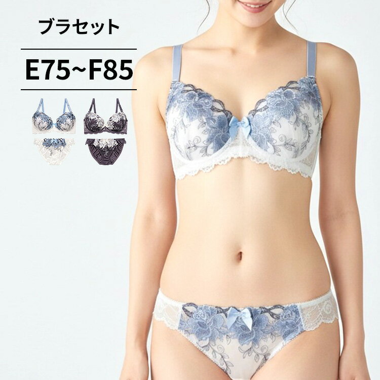 ブラジャー ショーツ セット ブラ&ショーツ(ブラ ブラセット ブラショー ブラショーツ)[EFカップ]花柄 薔薇柄 バラ柄 ローズ柄 刺繍 刺しゅう ししゅう チュールレース レース 大きいサイズ [三恵]