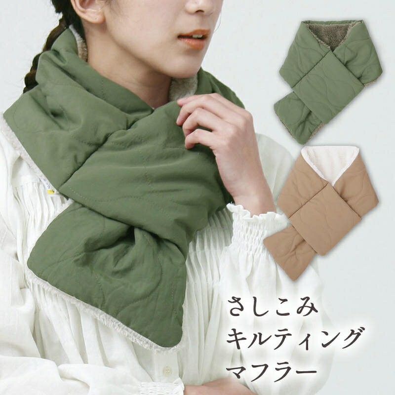 さしこみ マフラー キルティング ティペット レディース メンズ キルト カジュアル お洒落 かわいい ストール 襟巻き カーキ ブラウン グリーン おやすみマフラー 防寒 もこもこ 裏起毛 挿しこみ エコファー フェイクファー
