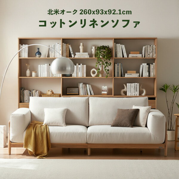 【受注生産品】ソファ 3人掛け カウチソファ おしゃれ 北欧 ベージュ 2人掛け ローソファー リビング 木製 ファブリックソファ 韓国インテリア 無垢材フレーム グース羽毛 クッション付き コットンリネン 家具 アイボリー