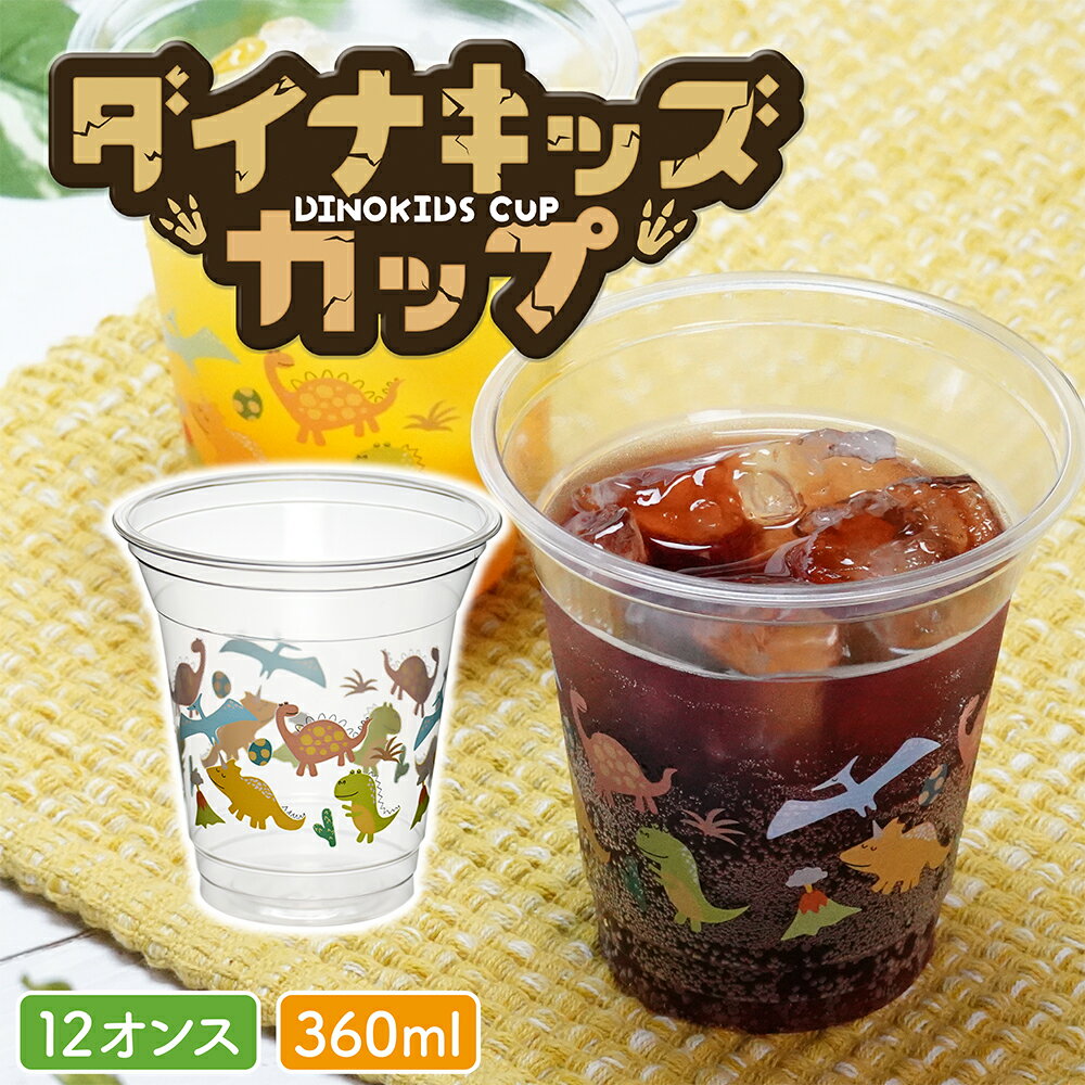 ダイナキッズカップ 10個入 360ml 12オンス 恐竜 子供 キッズ プラコップ プラカップ 紙コップ プラスチックカップ イベント パーティー 誕生日会 子供会 おしゃれ ティラノサウルス トリケラトプス プテラノドン 蓋付 使い捨て