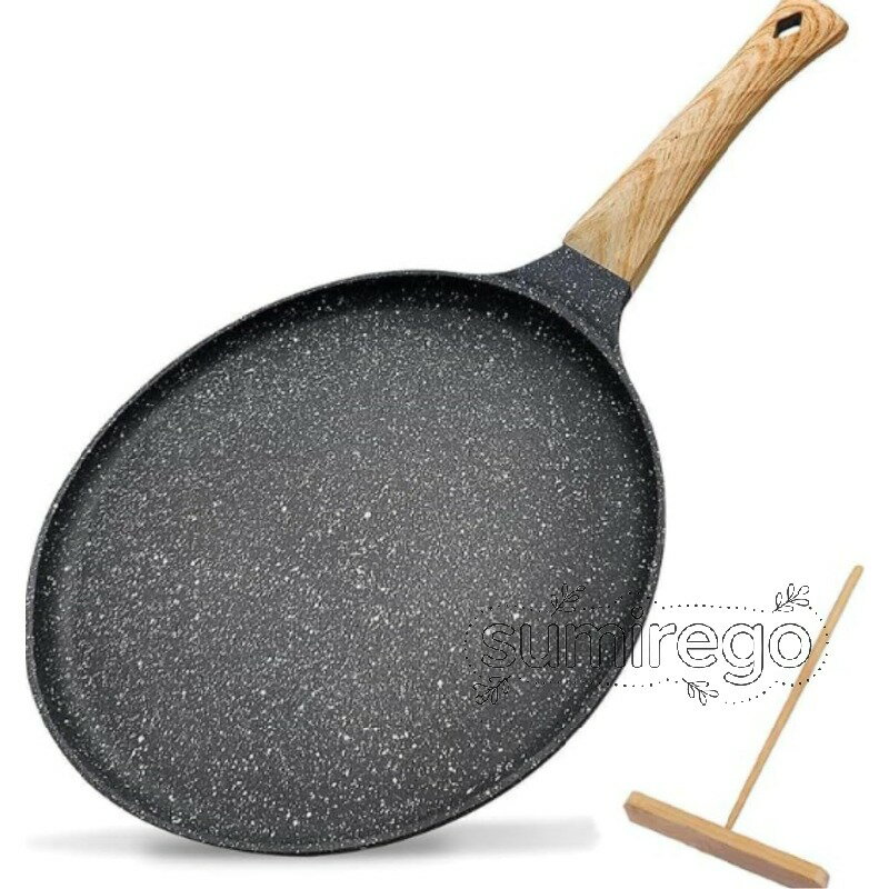 クレープパン パンケーキ ドサ タワパン ノンスティック フラットグリドル フライパン オムレツ トルティーヤ 20/24/28cm 軽量 耐熱ハンドル付き 焦げ付かない マーブルコート お手入れ簡単 (20cm,ブラック)