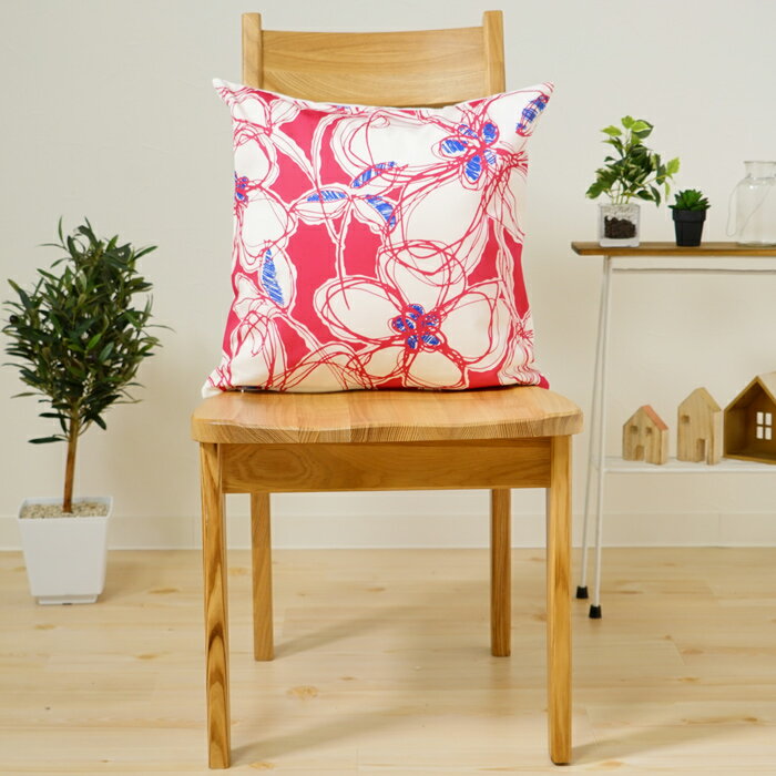 クッションカバー おしゃれ 45×45cm SROWシリーズ「フローラ(レッド)」 花柄 北欧 モダン 洗える メール便送料無料