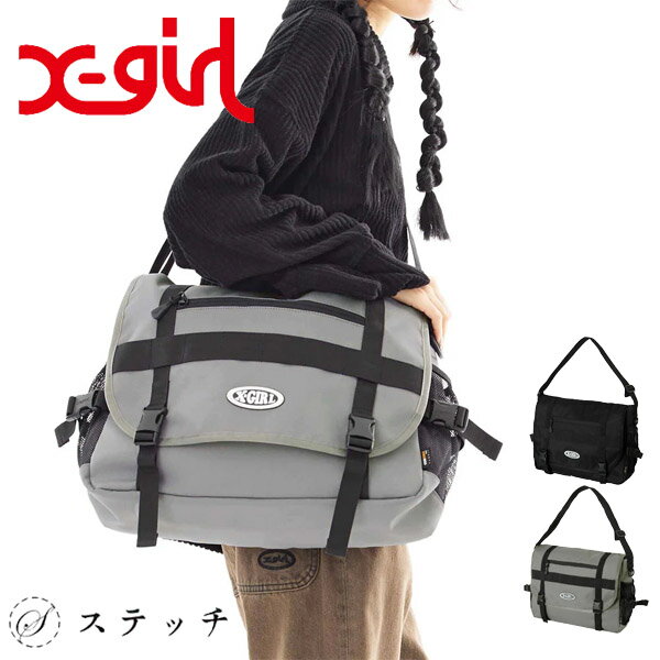 X-girl エックスガール ショルダーバッグ OVAL LOGO MESSENGER BAG 105231053006 バッグ ショルダーレディース 斜めがけバッグ メッセンジャーバッグ 軽量 女子高生 女子 レディース ボディバッグ おしゃれ 中学生 高校生 大学生 学生 トレンド ブラック グレー ONESIZE