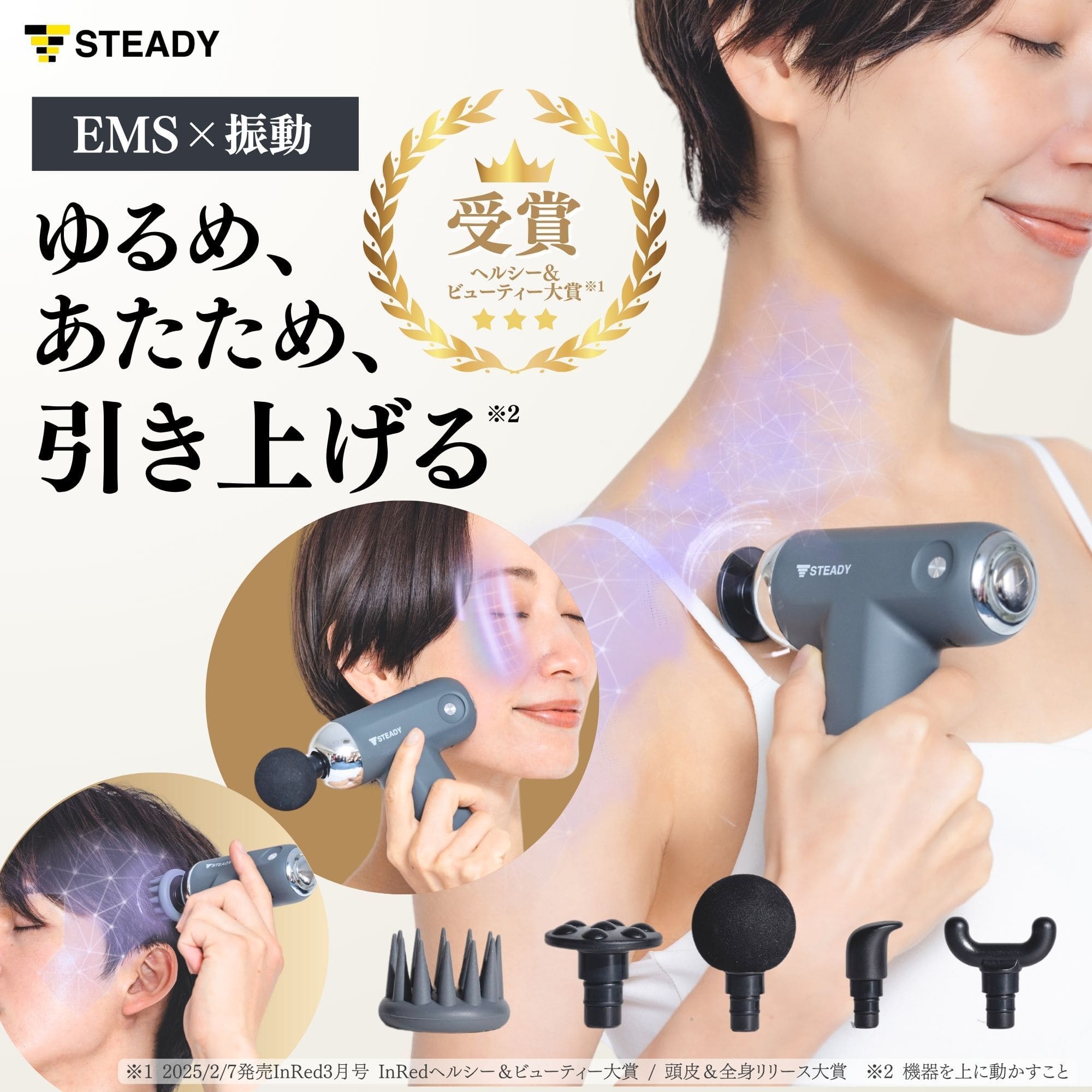 \5%OFF ~2/1まで/EMS美容&リリースガン ハンディガン ミニ 軽量 マッサージガン 電動 ハンディマッサージャー 美顔器 フェイスケア リフトケア 筋膜リリース スカルプケア EMS ヘッドマッサージ 【1年保証】STEADY ST150