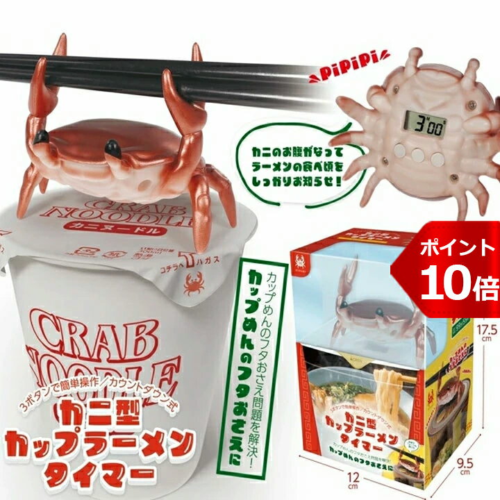 【P10倍】キッチンタイマー カニ型 カップラーメンタイマー フタおさえ 蓋浮き防止 箸置きにもなる 最大99分 デジタル カウントダウン式 おしゃれ クリスマスプレゼント
