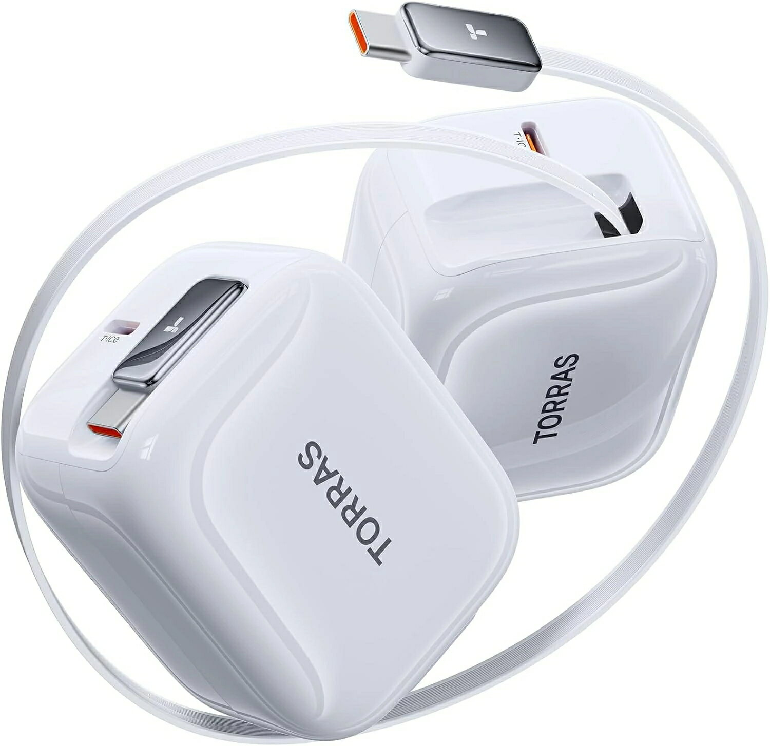 「自動巻き取り式」TORRAS 充電器 FlexLine タイプc 急速充電器 急速 40W PD3.0対応 Type-C充電器 ケーブルー体型 折りたたみ式 プラグ PSE認証済み iPhone17 iPhone16 iPhone16Pro max iPhone15 iPhone15pro max 旅行 出張 ブランド ホワイト iPhone充電器