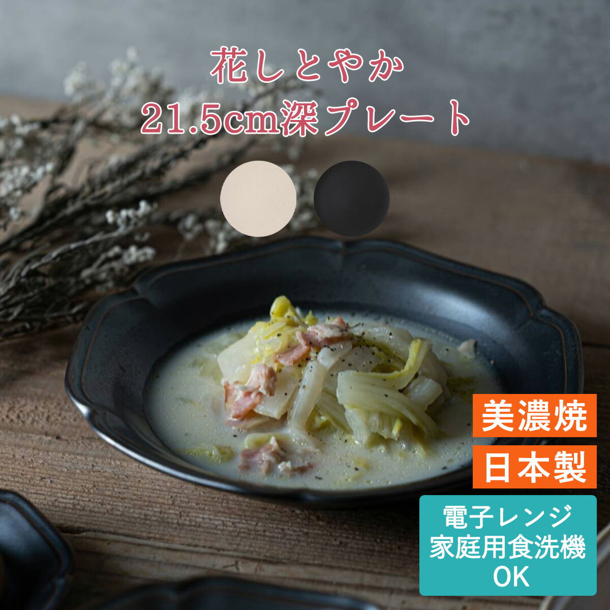 花しとやか 21.5cm深プレート ペッシュ ノワール 日本製 美濃焼 洋食器 おしゃれ 宅配便