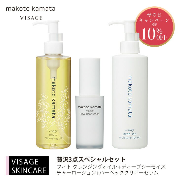 【10%OFF】贅沢3点スペシャルセット フィト クレンジングオイル 250ml ディープシーモイスチャーローション 250ml ハーベッククリアーセラム 30ml毛穴 敏感肌 W洗顔不要 メイク落とし 化粧水 高保湿 敏感肌 低刺激 保湿 ミネラル 海洋深層水 美容液 セラム VISAGE