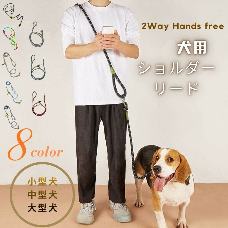 送料無料 ペットショルダーリード 犬 ショルダーリード 肩掛けリード 斜め掛けリード ハンズフリー リード 犬用 大型犬 中型犬 小型犬 脱走防止 お散歩 反射 多機能