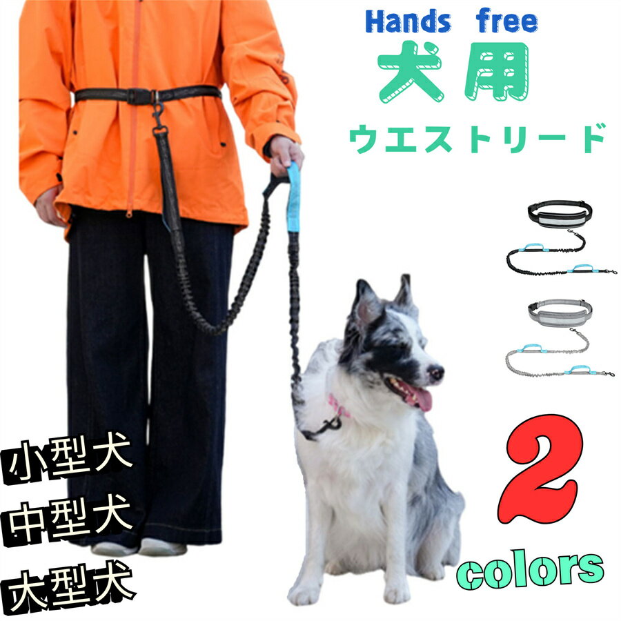 送料無料 犬 リード ウエストリード ウエストサポーター マルチハンドル伸縮リード 腰巻き ハンズフリー トレーニングリード 防爆走防止機能 ソフトハンドル 耐久性 犬用 万能リード サイズ調整 可能中型犬 大型犬 丈夫 反射 160cm スタンダードリード 脱走防止 お散歩