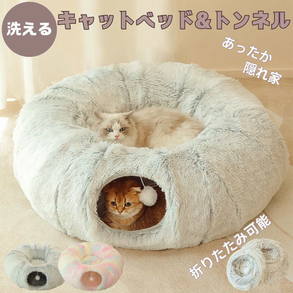 送料無料 キャットベッド&トンネル 2WAY仕様 ペットベッド 猫用ベッド ペット用ベッド 猫・小型犬用 寝床 クッション ふわふわ 折りたたみ可能 取り外して洗える 安定性 もこもこ 多猫向け 猫ちゃんのストレス解消に!