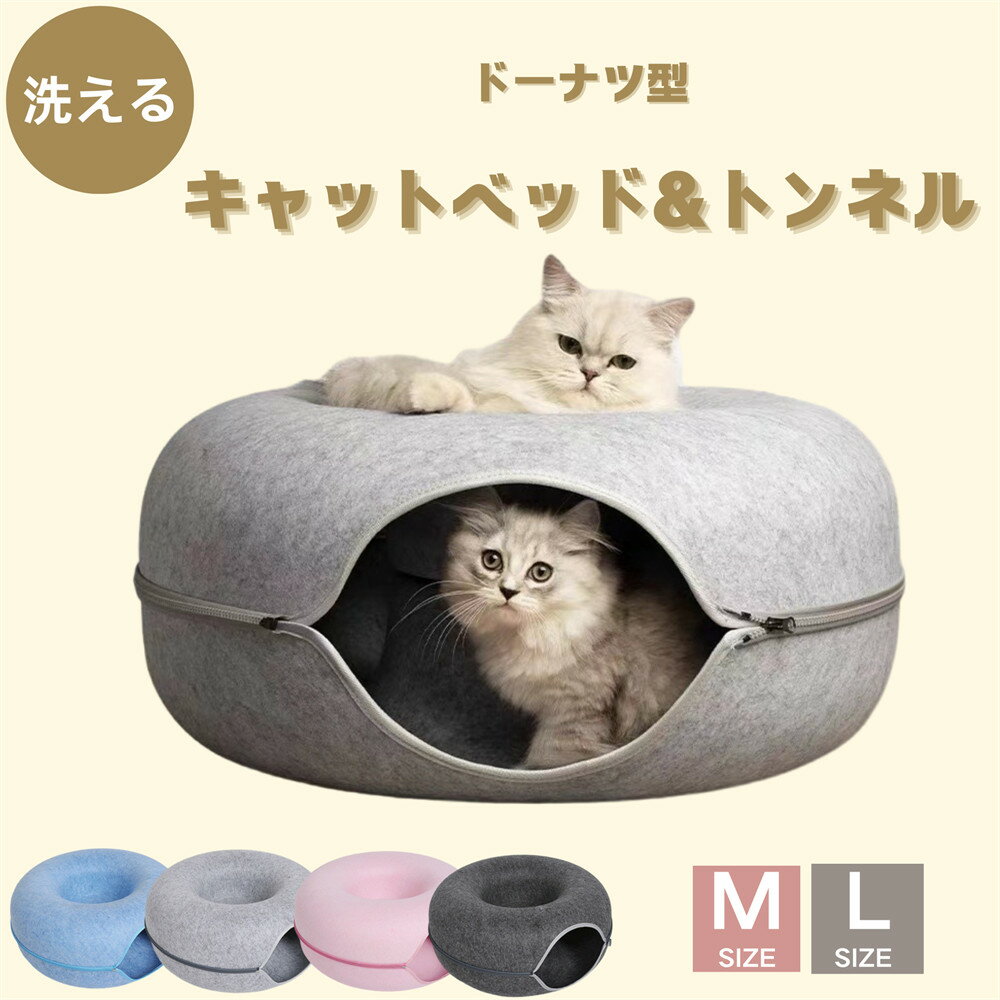 送料無料 キャットベッド&トンネル 2WAY仕様 ペットベッド 猫用ベッド ペット用ベッド 猫・小型犬用 寝床 ドーナツ型 フェルト製 取り外して洗える 安定性 通気性 多猫向け 猫ちゃんのストレス解消に!