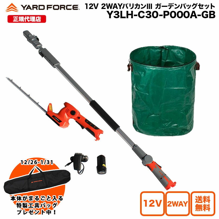 【P10倍 期間限定で特製工具バッグプレゼント中】剪定バリカン 高枝 2way 大容量 ガーデンバッグ付き「12Vコードレス2WAY剪定バリカンIIIガーデンバッグセット」 ガーデンバッグ 297L 充電式 YARDFORCE Y3LH-C30-P000A ヤードフォース【メーカー保証最大1年6ヶ月】新商品