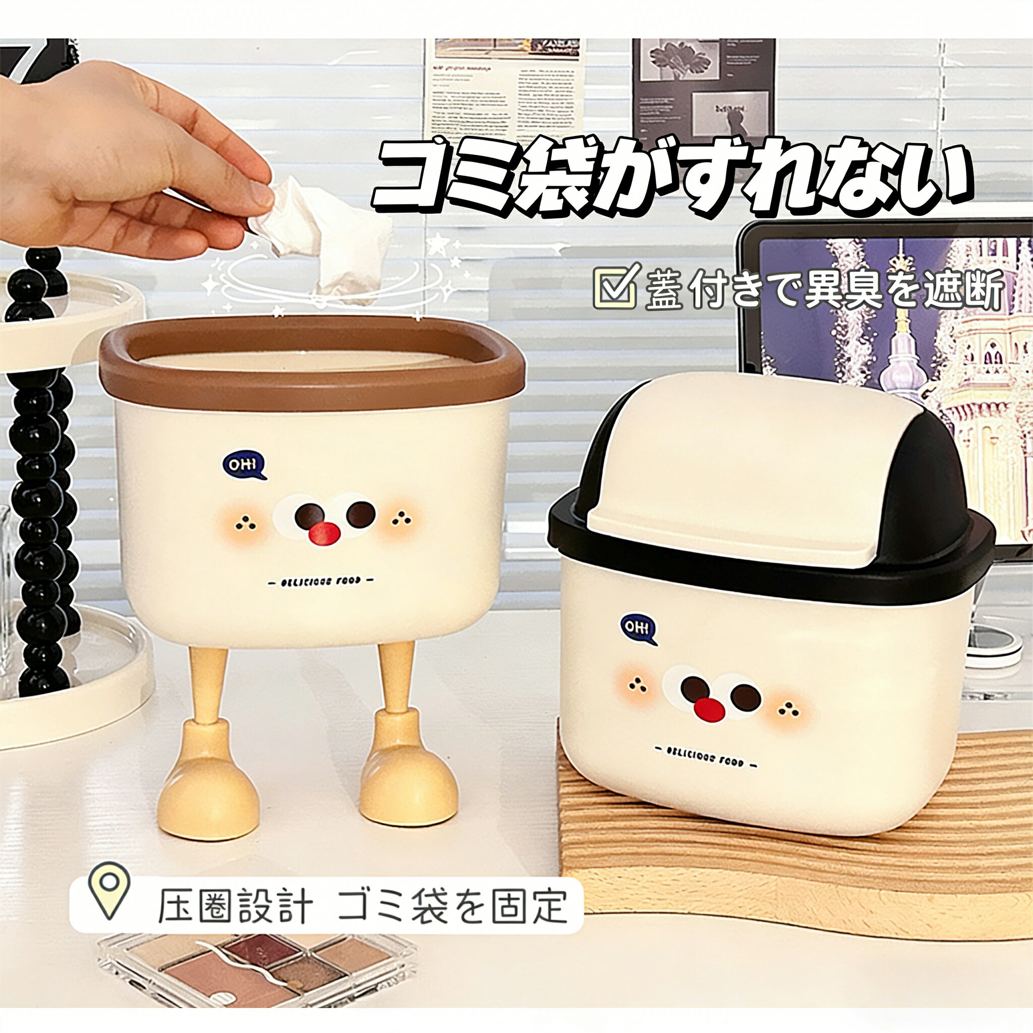 かわいい デスクトップ大容量 ゴミ箱 2025年新 寝室 オフィス 小型 収納 バケツ インテリア ダストボックス シンプル コンパクト 蓋 小足 付き テーブル オフィス 寝室 化粧台