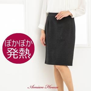 事務服 スカート ウエストゴム 発熱 静電気 帯電 防止 秋 冬 タイトスカート シワになりにくい ひざ丈 チャコール 洗える ウオッシャブル