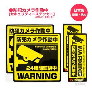 防犯ステッカー 防犯カメラ シール【耐候・防水 日本製】 防犯カメラ作動中 シール (195×195mm,80mm×195) 2サイズ各2枚入り、 計4枚セット