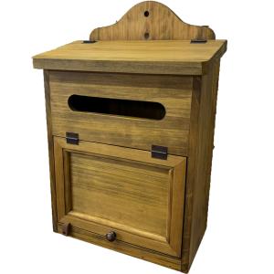 早め発送 縦型ポスト アンティークブラウン 30×19×45cm 角2封筒がキチンと入る 木製扉 真鍮つまみ 木製 ひのき ハンドメイド