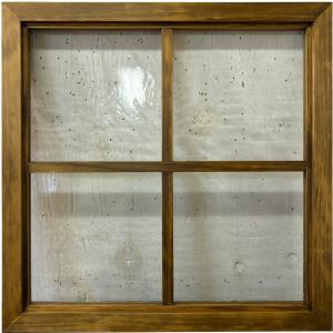 FIX窓・室内窓 アンティークブラウン アルトドイッチェガラス 両面桟入り 60×3.5×60cm 木製 ひのき ハンドメイド 受注製作