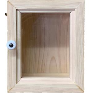 コレクションケース ライトオーク 透明ガラス 15×10×19cm 四角 陶器白つまみ ディスプレイ 木製 ヒノキ ハンドメイド 受注製作