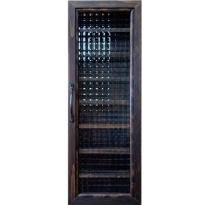 メガネ収納ケース 透明ガラス扉 ダークブラウン 19.5×8.5×55cm アイアン細取っ手 壁掛け 眼鏡用コレクションケース 木製 ひのき ハンドメイド 受注製作
