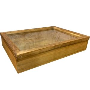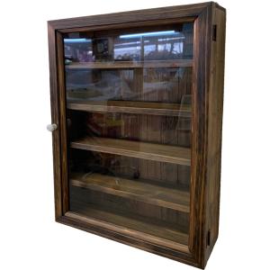 コレクションケース アクセサリーケース アンティークブラウン 透明ガラス 41×30×9cm つまみなし 木製 ひのき ハンドメイド 受注製作