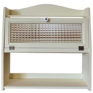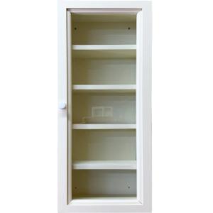 早め発送 メガネ収納ケース 埋め込みマグネット アンティークホワイト 19×11×52cm 透明ガラス 壁掛け 木製 ひのき ハンドメイド
