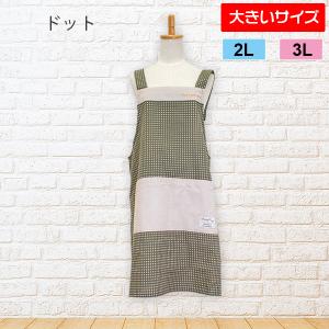 エプロン 大きいサイズ 2L 3L(グリーン)先染ドット ネコポス送料無料