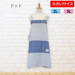 エプロン 大きいサイズ 2L 3L(ネイビー)先染ドット ネコポス送料無料