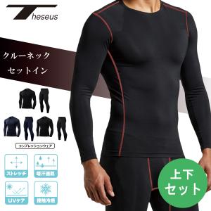 テセウス コンプレッション 長袖 上下セット メンズ インナー シャツ タイツ レギンス クルーネック セットイン アンダーウェア ウェア 機能性 THESEUS