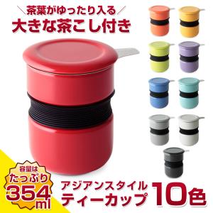 マグカップ 蓋付き おしゃれ カーヴアジアンスタイル ティーカップ 茶こし付き 全10色 入学 新生活 プレゼント タンブラー フォーライフ 陶器製 紅茶用