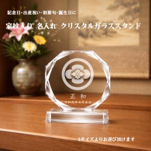 名入れ 記念品 オーダーメイド クリスタルガラススタンド 名前入り 名入れギフト 記念日 プレゼント 和風 家紋 端午の節句 初節句 こどもの日 男の子 出産祝い