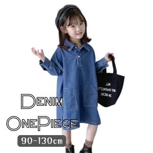 デニムワンピース Aライン ジーンズ キッズ ジュニア 女の子 90cm 100cm 110cm 120cm 130cm
