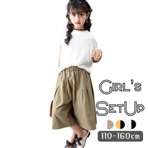 上下セット 2点セット 半袖シャツ ワイド ゆったり パンツ カジュアル ガウチョ 女の子 ガールズ キッズ ジュニア