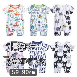 半袖 5分丈 イラスト柄 ロンパース やわらか素材 韓国子供服 おしゃれ 乳幼児 キッズ ベビー服 59cm 60cm 66cm 70cm 73cm 80cm 90cm