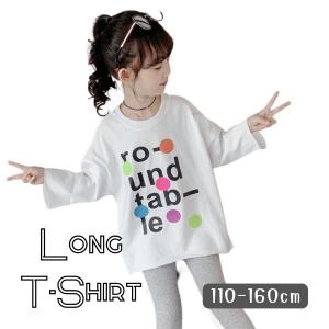 イラスト ロゴ 長袖 Tシャツ ロンT カットソー ロング丈 春 秋 冬 韓国子供服 スマイル 女の子 ガールズ 110cm 120cm 130cm 140cm 150cm 160cm