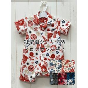 アロハロンパース|紅型柄 鳳凰|ベビー【在庫限り】