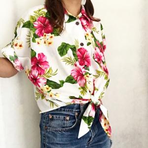 レディース半袖アロハシャツ<生地持込オーダーメイド>縫製のみ|柄合わせ・ボタン指定・着丈変更可