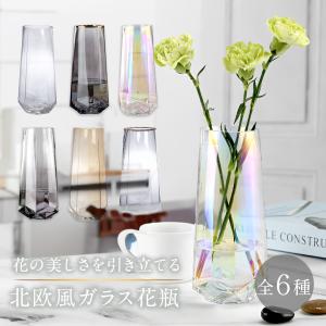 【選べる8種】 北欧風 ガラス 花瓶 フラワーベース 20cm シンプル モダン 上品 おしゃれ アンバー グレー クリア オーロラ レインボー パイナップル ストライプ