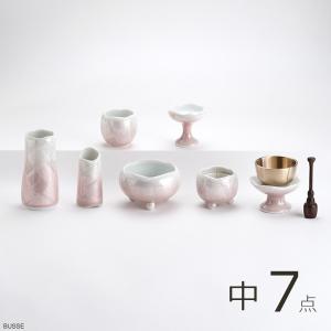 仏具 セット ほのか 九谷銀彩 ピンク 中サイズ 7点 /仏具セット ミニ モダン 手元供養仏具 日本製 陶器製 7点セット 3.0寸