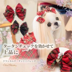 犬 バレッタ アクセサリー リボン アクセ 秋冬 タータンチェック チェック ギフト プレゼント 小型犬 犬服 撮影 きゃんナナ LB-326