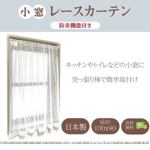 小窓カーテン レース 防炎 北欧風 おしゃれ 明るい 通気性 レース編模様 KL58675B 幅100×丈90