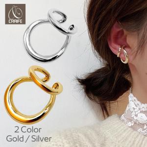 イヤーカフ 大ぶり 片耳用 金属アレルギー対応 18Kコーティング ニッケルフリー イヤーカフス イヤカフ ダブルライン イヤリング ゴールド シルバー 送料無料