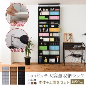 本棚 薄型 上置き 90幅 文庫本 ラック スリム 1ピッチ 大収納ラック 収納家具 本収納 文庫本 漫画 CD DVD つっぱり 壁面収納