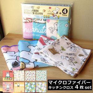 キッチンクロス スヌーピー ミッフィー マイクロファイバー 4枚入り おふきん 食器拭き 台拭き キッチングッズ プレゼント インスタ映え ダブルスリー