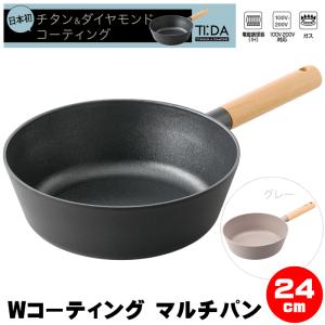 フライパンih 24cm 深型 マルチパン チタン&ダイヤモンド IH対応 Wコーテイング TIDA ティーダ フッ素樹脂加工 PFOAフリー 軽い 焦げ付かない 軽量