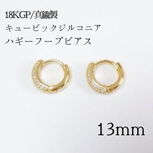 <送料無料>13mm 18KGP/真鍮製 ジルコニアハギーフープピアス