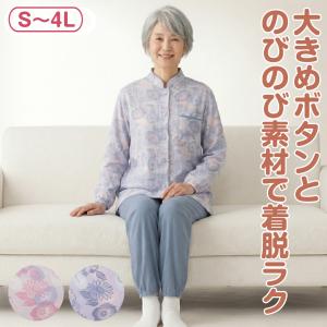婦人用 乾燥機対応 大きめボタン のびのびストレッチパジャマ 前開き S〜4L 介護 入院 施設 シニア レディース