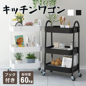 キッチンワゴン キャスター付き 3段 スリム A型パイプ スチール製 メッシュ フック付き 耐荷重60kg キッチン収納 隙間収納 爆買